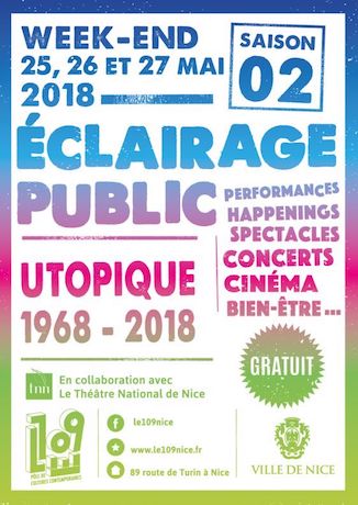 Éclairage Public au 109 – Pour sa deuxième édition, Éclairage Public propose à nouveau 3 jours de découvertes, de rencontres et de création artistique au 109 autour du cinquantenaire de mai 68. Le 109 s’est associé cette année au THÉÂTRE NATIONAL DE NICE qui proposera le même week-end en ses murs, spectacles, débats, conférences, mais aussi des rendez-vous ponctuels au 109.