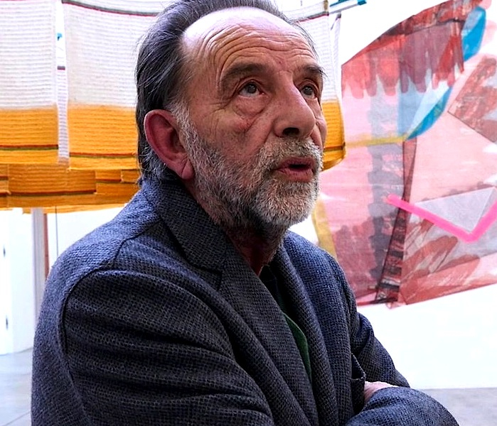 Noël Dolla continue par là à poursuivre les questions qu’il posait dans son ouvrage : La parole dite par un œil. Cette réalisation immersive, qui pose avant tout la question de la pratique, met aussi en perspective la part du politique dans l’œuvre.