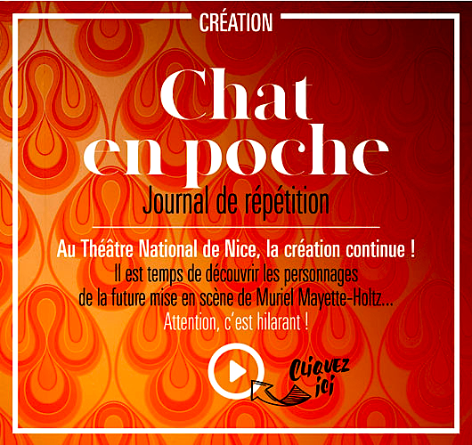 Muriel Mayette-Holtz et la troupe souhaitent partager avec vous quelques moments de travail et de création. L’équipe artistique de Chat en poche s’est emparée du plateau pour répéter la création qui aura lieu en décembre prochain. Vous êtes conviés à les suivre sur le site du TNN et ses réseaux sociaux.