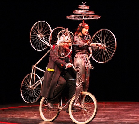 Lui, malicieux magicien aux valises extravagantes, manie l’humour et la dérision avec une finesse rare. Elle, délicieuse acrobate, danseuse parée de ses costumes magiques, se lance dans une série de métamorphoses étonnantes. Devant nos yeux émerveillés, ces deux grands artistes ouvrent la porte du rêve, libérant des créatures étranges, bouleversant la perception du temps et animant d’inoubliables fantaisies imagées : un ballet d’ombrelles rouges, des théières transformées en dragons, des licornes apprivoisées…